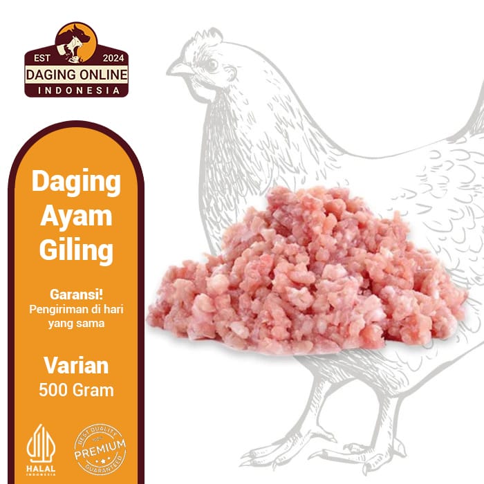 Nikmati kepraktisan memasak dengan daging ayam giling segar dari DagingOnline.ID! Diproses dari 100% daging ayam pilihan, tanpa campuran dan bebas bahan pengawet. Tekstur lembutnya menjadikannya bahan utama yang sempurna untuk berbagai hidangan, dari bakso ayam hingga isian dimsum.